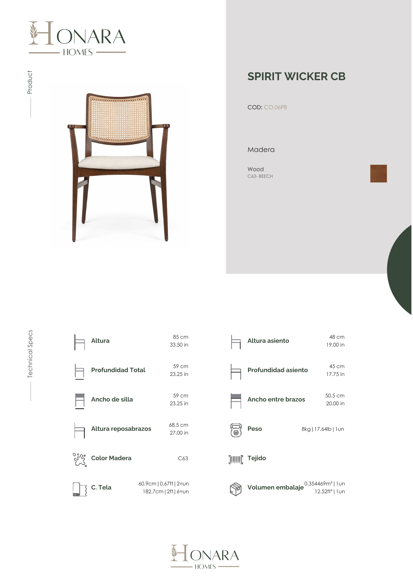 La silla Spirit Wicker es una celebración de la madera bien trabajada y del diseño atemporal. Su silueta es sencilla, equilibrada y elegante, pensada para integrarse con naturalidad en comedores contemporáneos y espacios con alma.