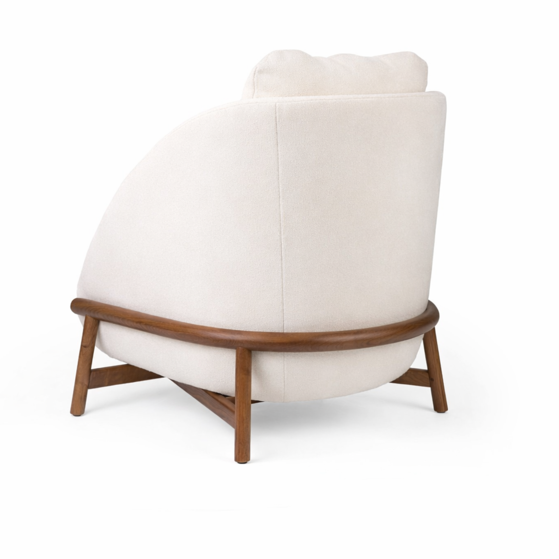La estructura combina proporciones equilibradas con un lenguaje de diseño contemporáneo, donde cada curva está pensada para aportar ligereza visual sin perder presencia. Sus apoyabrazos integrados nacen de forma fluida desde el asiento, reforzando la sensación de pieza escultórica.